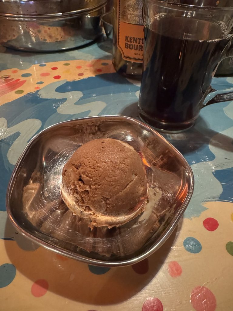 濃厚なコーヒーとくるみのダブルロースト感のアイスに、ノチェロというくるみの甘いリキュールがかかった、とてもリッチなデザート。